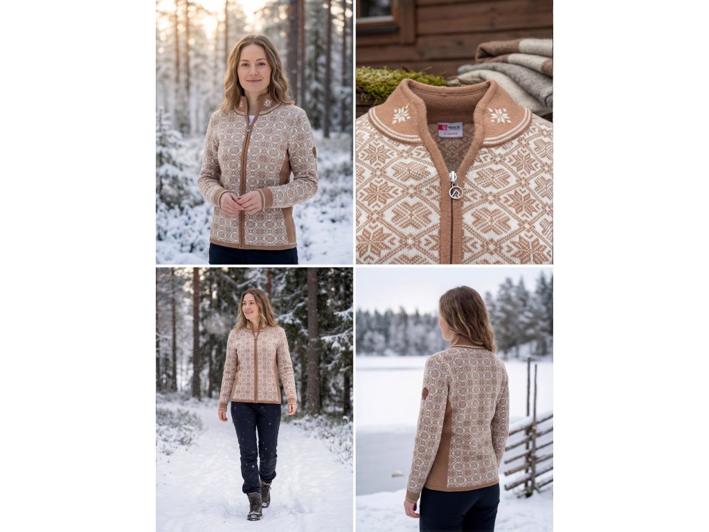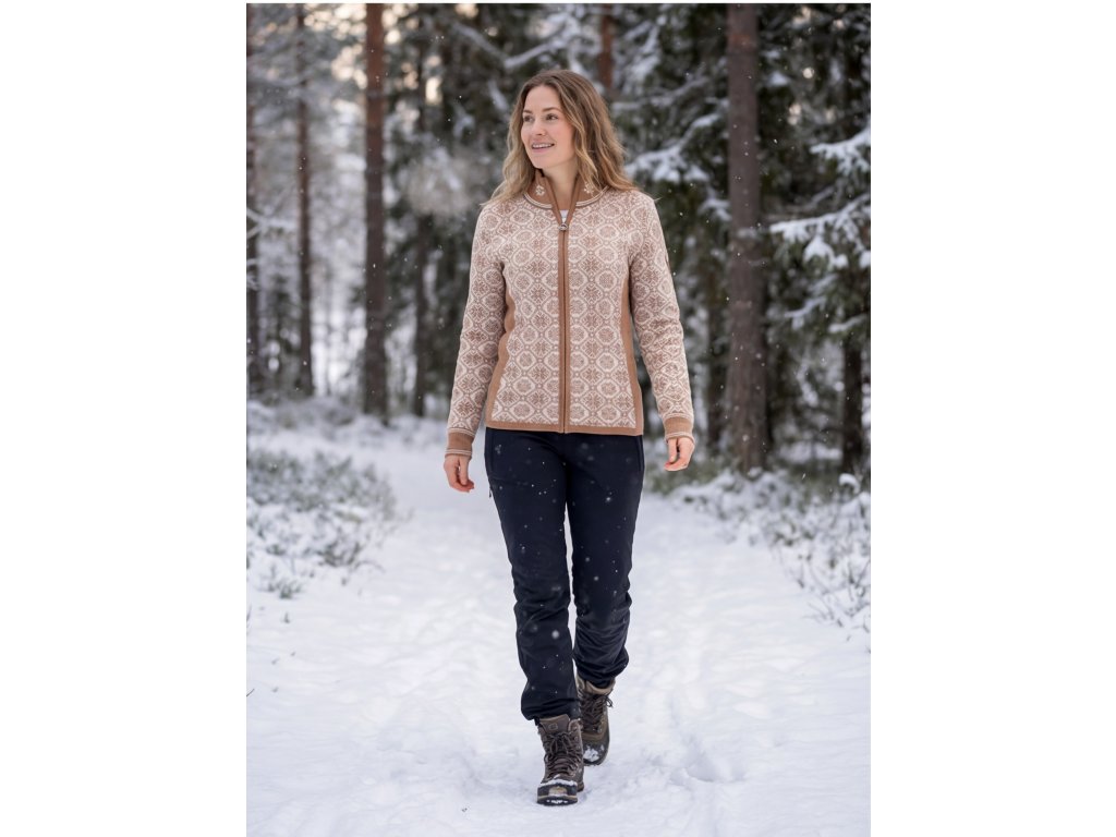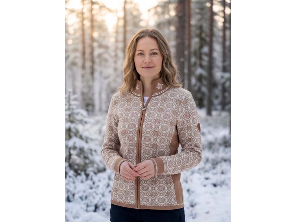 Tento exkluzivní kousek, není jen obyčejným svetrem. Je to manifestace severské elegance a nekompromisní kvality. Kombinace jemných odstínů Rose a Camel v doprovodu ikonického norského vzoru vytváří nadčasový kousek, který ve vašem šatníku zaujme čestné místo.