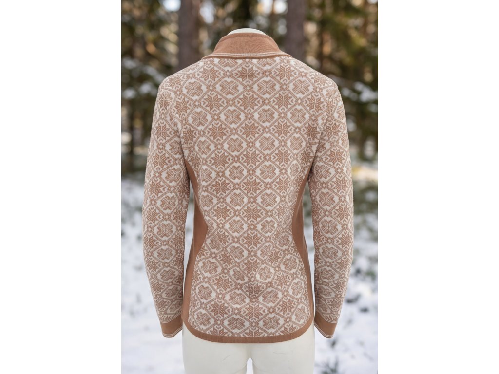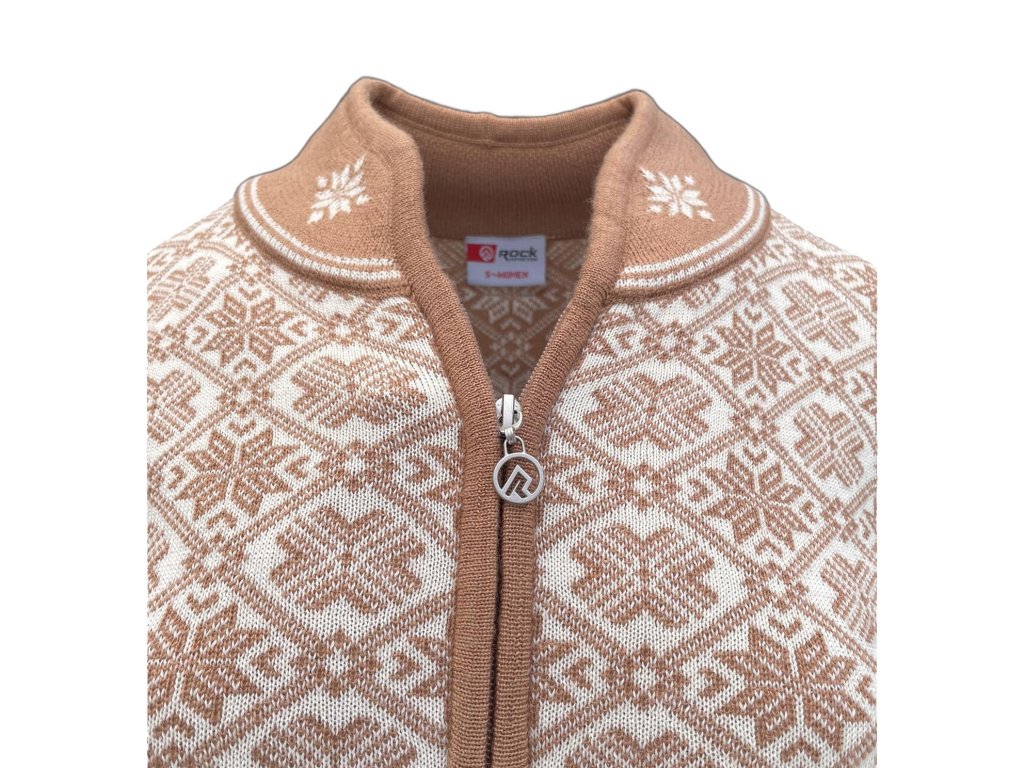 Dámský merino svetr na zip s norským vzorem – Camel