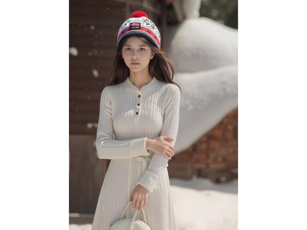 Norská vlněná čepice se střapcem - Mønstret červeno-šedá