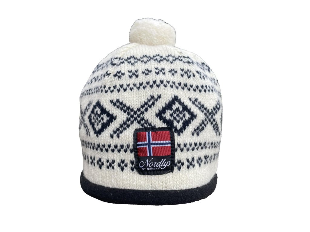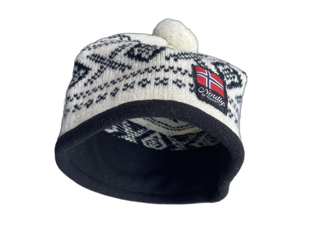 Norská zimní pletená vlněná čepice Nordlys Setasdal Bílá se střapcem.