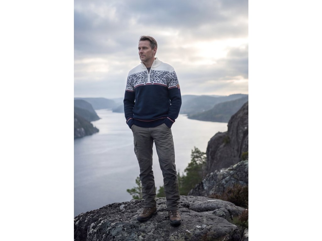 Jednovrstvý 100 % vlněný merino svetr hodící se na každodenní nošení. Tradiční Norský svetr je velmi oblíbený, nadčasový a díky tomu se těší popularitě už po několik generací.