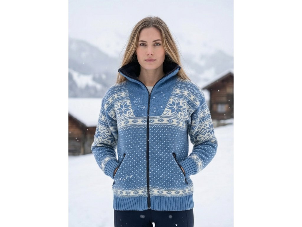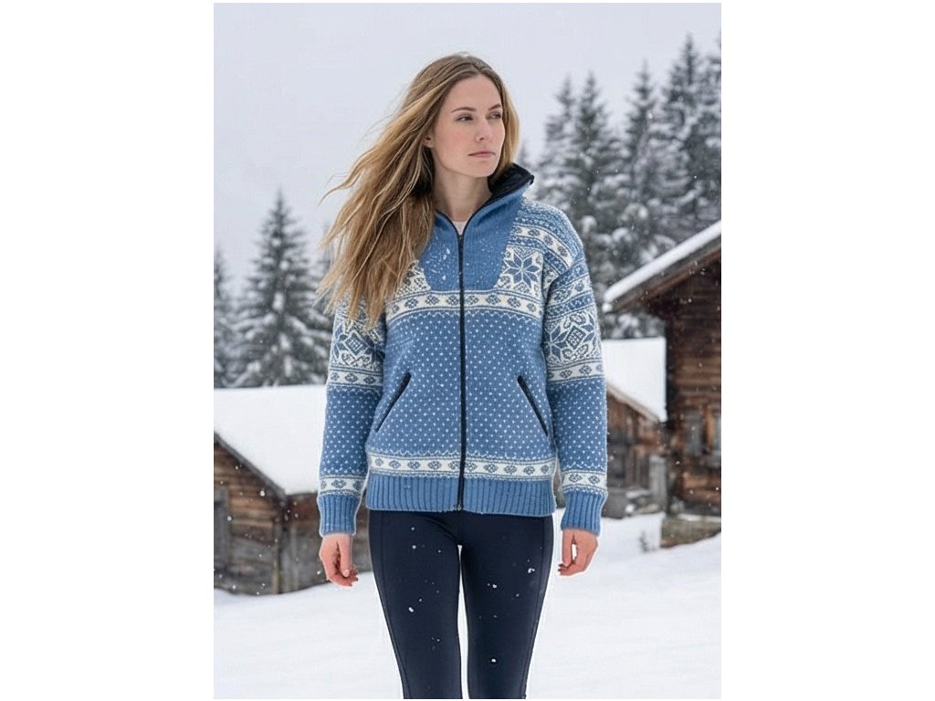 Norský vlněný svetr s membránou Mønstret – Modrá