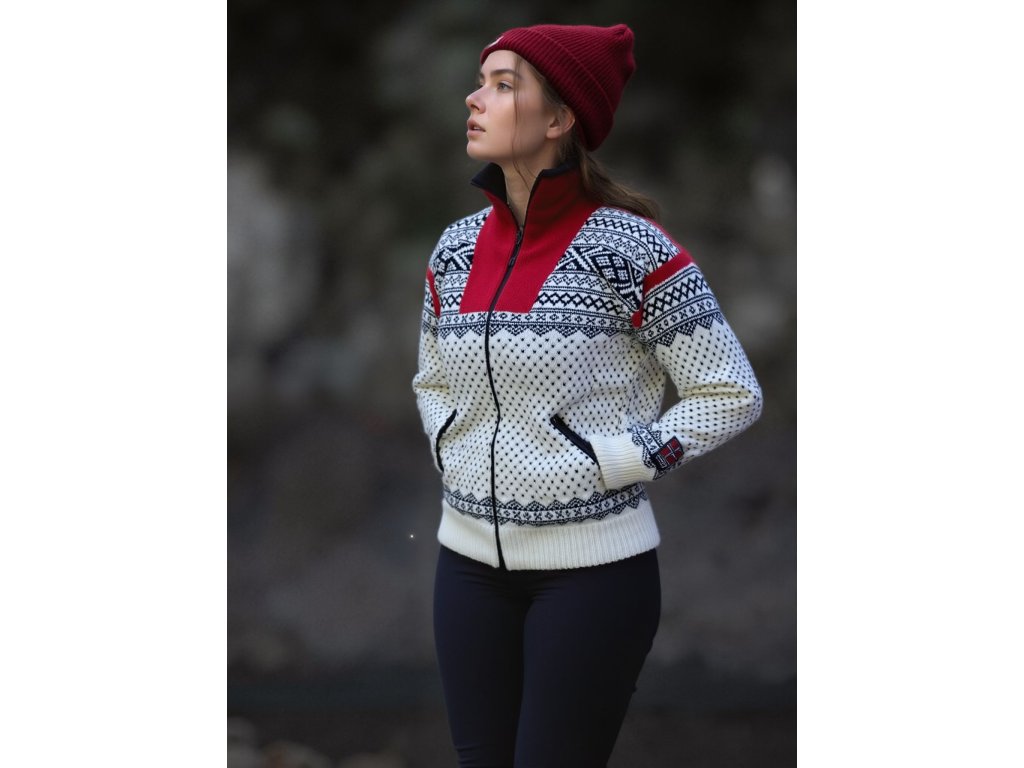 100% vlněný svetr je dokonalou ochranou před jakýmkoliv počasím. Díky větruodolné a zároveň prodyšné membráně WINDBREAKER, která nepropustí ani ten nejsilnější vítr. Svetr má vysoký límec, který je na vnitřní straně chráněn příjemným fleecem, proto je vhodný i pro ty, kteří mají velmi citlivou pokožku. Dlouhý zip a dvě boční kapsy dělají z tohoto svetru pohodlného parťáka, který bude sloužit bez další vrstvy do teplot okolo 0. V silných mrazech lze využít jako vrstva pod zimní bundu. Vzor je složen z osmilisté růže spolu s prvky typických pletených norských vzorů.